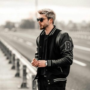 Japanese Authentic Men Black Varsity Bomber Jacket