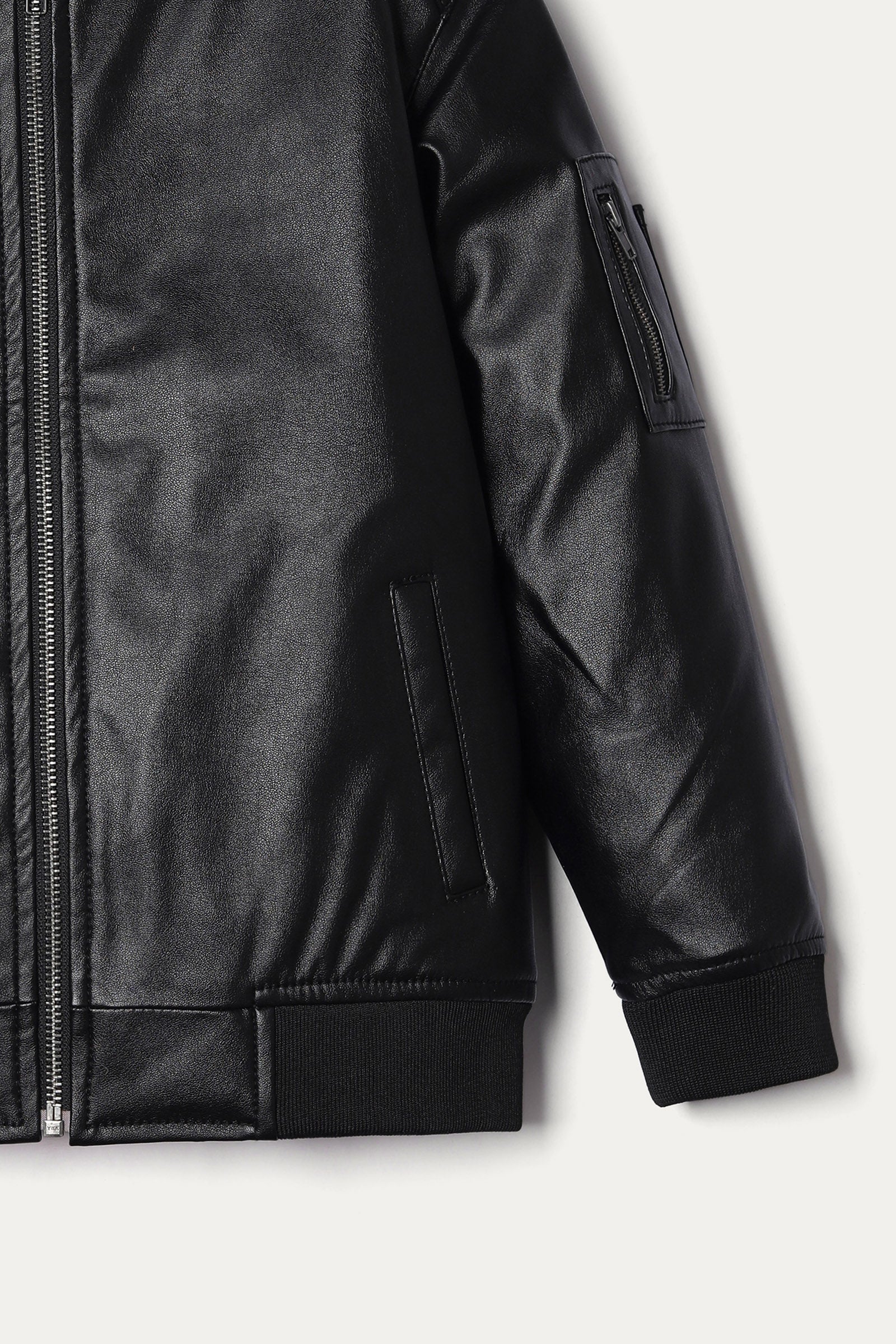 Mens Leather Jacket with Detachable Hood