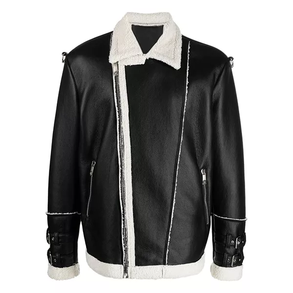 Embrace rugged refinement with our Black Shearling Faux Leather Jacket.This statement piece blends classic black faux leather with cozy lining for warmth and undeniable style. The asymmetrical zip closure adds a modern edge, while belted cuffs nod to timeless biker jackets. Stay organized with multiple pockets, and enjoy the comfort of a soft inner lining.we only make jacket using top notch material like leather,faux,buttons that why jackets always stays elegant as new.we also provide free shipping in UK,USA and all over the world.