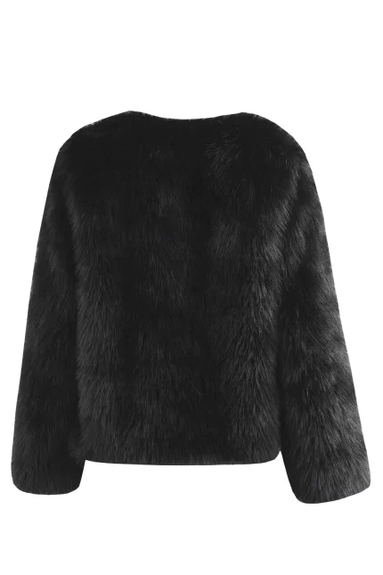 Black Fluffy Round Neck Faux Fur Stylish Cozy Outerwear