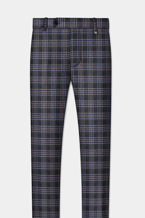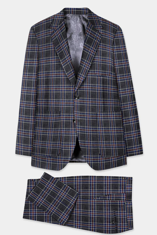 Men Gray Multicolour Plaid Tweed Suit