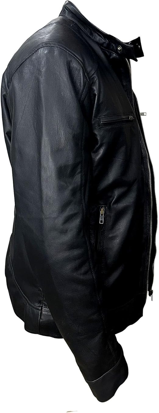 Black Genuine Lambskin Biker Leather Jacket
