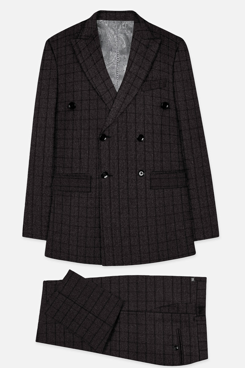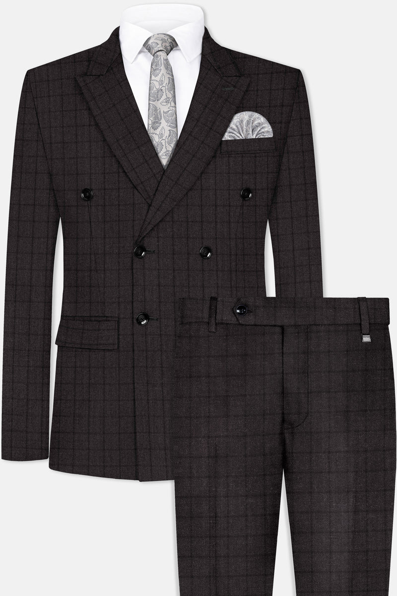 Men Black Striped Peaked Lapel Double Breasted Business Suits